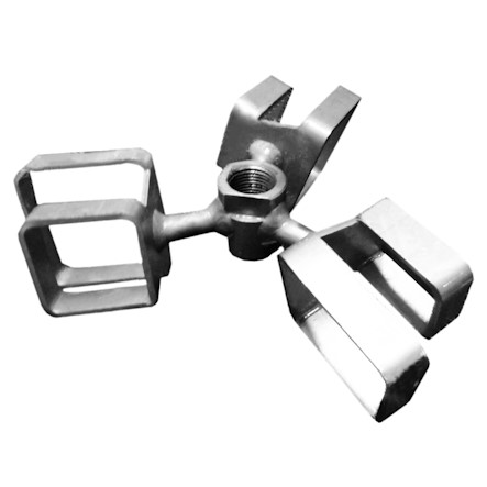 Для высоковязких жидкостей (например, для 10000-15000 сантипуаз) существует специальная версия такого импеллера - это, так называемый Crack-импеллер необычной формы, перемешивающие элементы которого представляют собой усечённую четырехугольную призму (см. фото выше).
