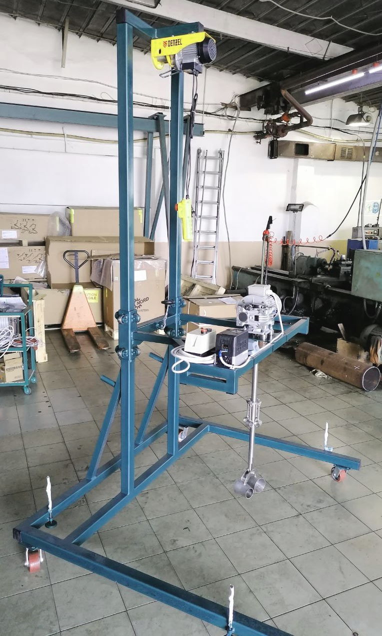 Также есть возможность изготовить специальный опорный штатив-стойку с ручным или электрическим подъемником для удобства использования одной мешалки для большого количества еврокубов.