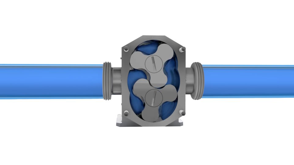 Кулачковый насос состоит из двух роторов (кулачков), синхронно вращающихся внутри корпуса насоса, не касаясь друг друга. При вращении роторов пространство между корпусом насоса и роторами наполняется продуктом, который вращением роторов перемещается к нагнетательному патрубку. Благодаря выверенным допускам между роторами и корпусом формируется непрерывный поток продукта, обеспечивая эффективный процесс перекачивания и высокую надежность.